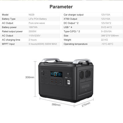 Outdoor 2000W Two-Way 2000W Quick AC Output Multifunction Power Bank 2000W Solar Portable Generator